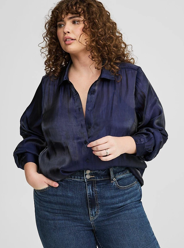 Gibson & Latimer Woven Point Collar Cap Dolman Sleeve Circle Button Front Shirt