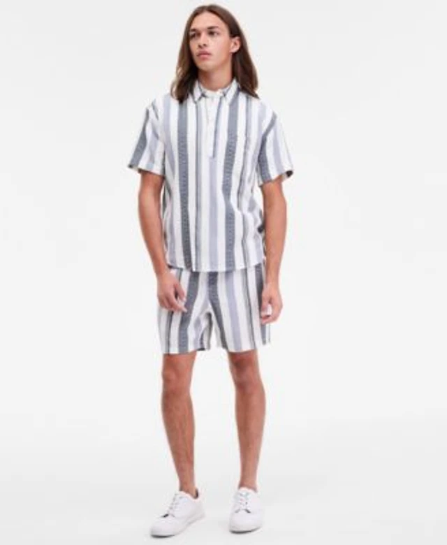 Weatherproof Vintage Men's Short-Sleeve Vertical Dobby Striped Shirt