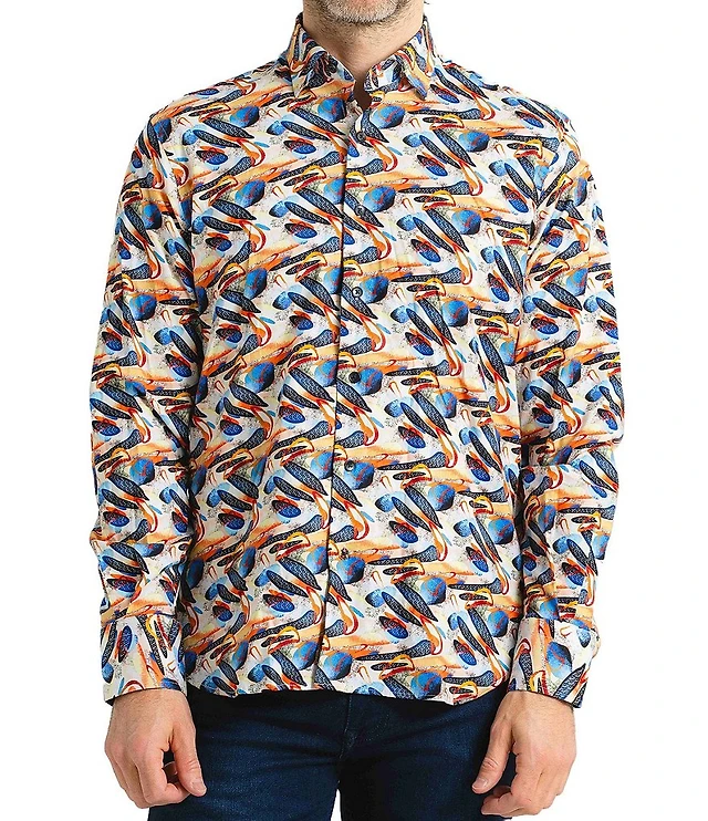 Visconti Diamond Splash Geo Print Long Sleeve Woven Shirt