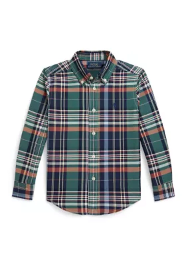 Boys 4-7 Plaid Cotton Oxford Shirt