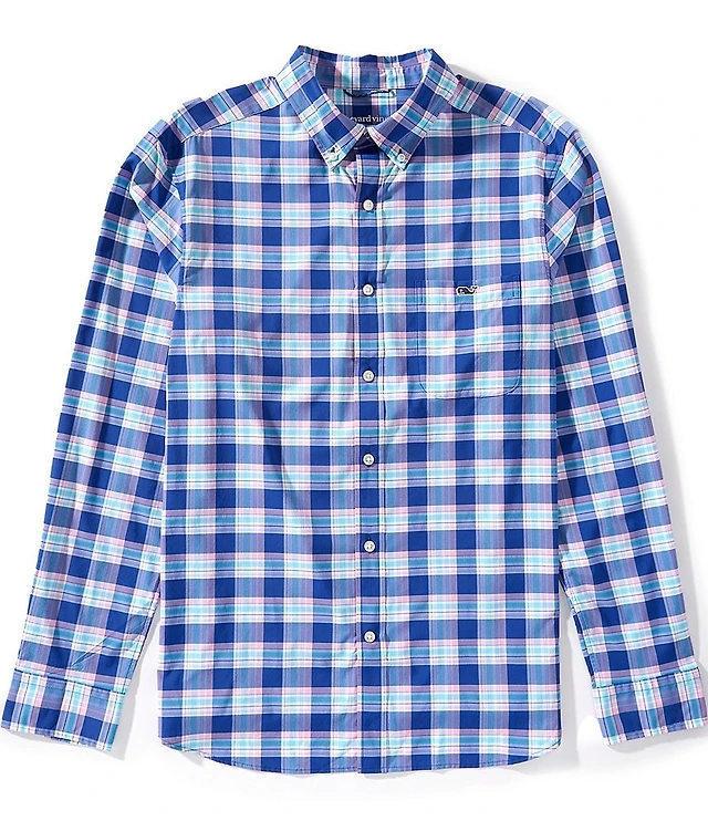 Southern Tide Benton Plaid Heather Double Cloth Long Sleeve Woven Shirt