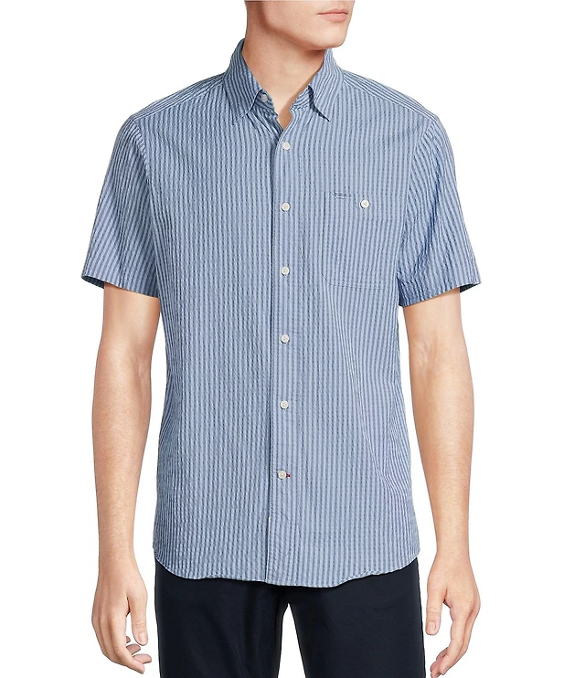Cremieux Blue Label Performance Stretch Solid Seersucker Short Sleeve Woven Shirt