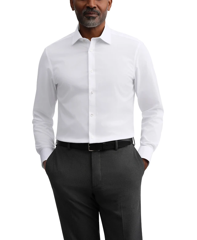 Hart Schaffner Marx State Street Essentials Albini 4FLEX Long Sleeve Solid Coat Front Shirt