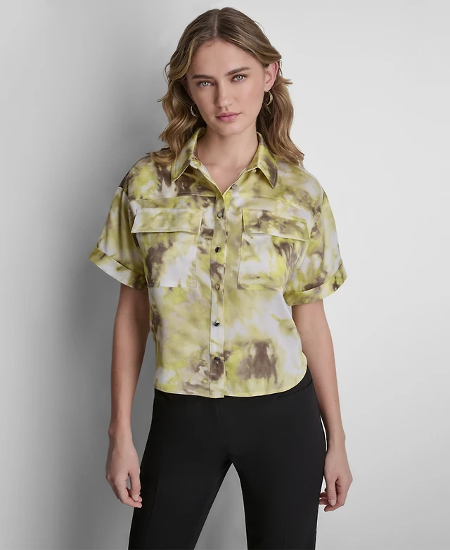 Karl Lagerfeld Paris Women's Collared Short-Sleeve Poplin Shirt