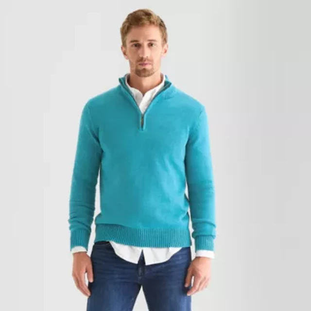 St. John's Bay Mens Mock Neck Long Sleeve Quarter-Zip Pullover Sweater