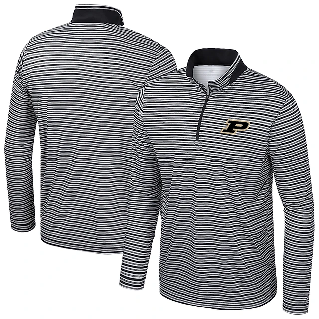 Men's Colosseum Black Miami Hurricanes Striped Quarter-Zip Top