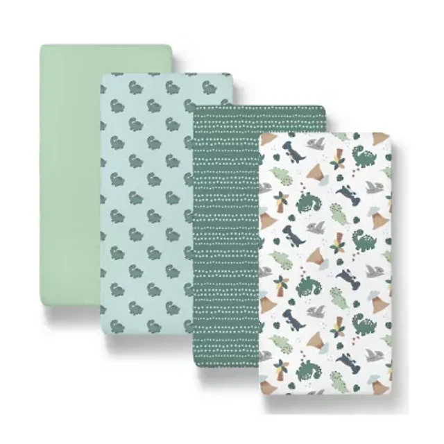 The Peanutshell Green Dino 4-pc. Bassinet Sheet
