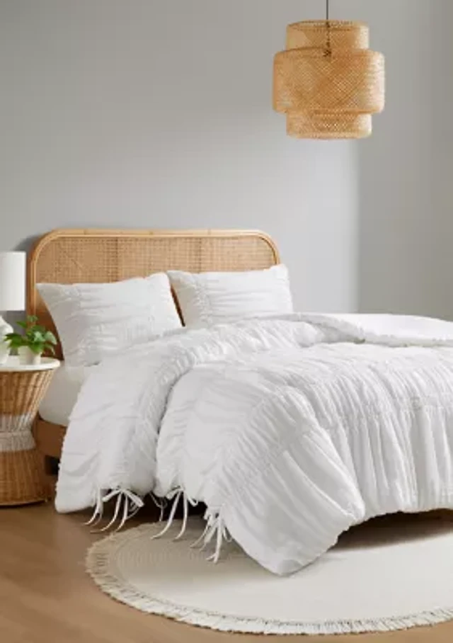 Blossom Floral White Puffy Textured Microfiber 3-piece comforter set