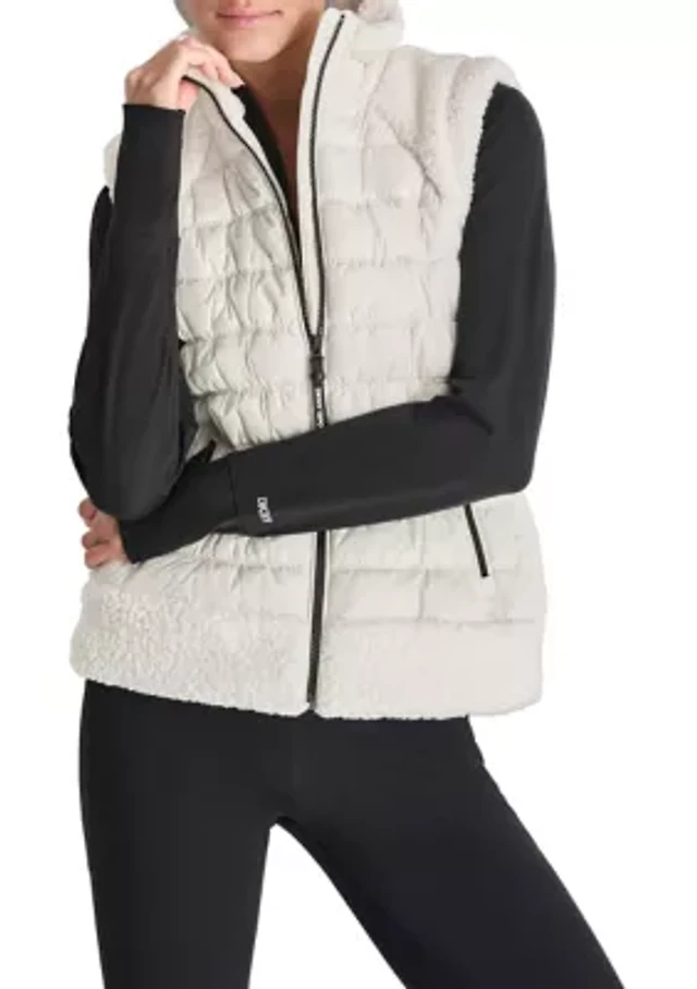 Puffer Vest with Teddy Fleece Collar