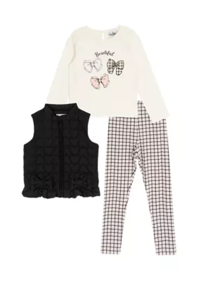 Toddler Girls 3-Piece Quilted Glossy Vest Set