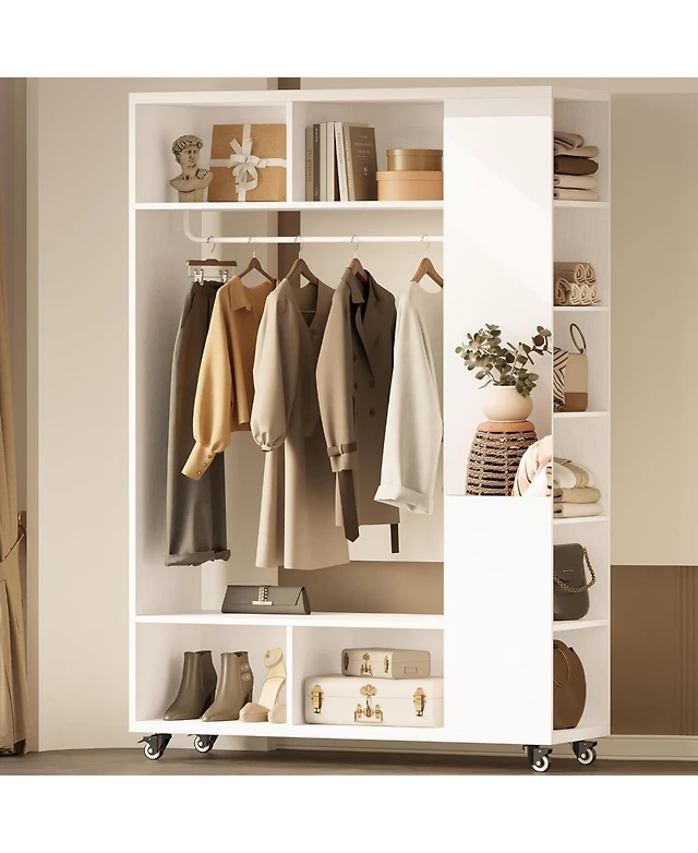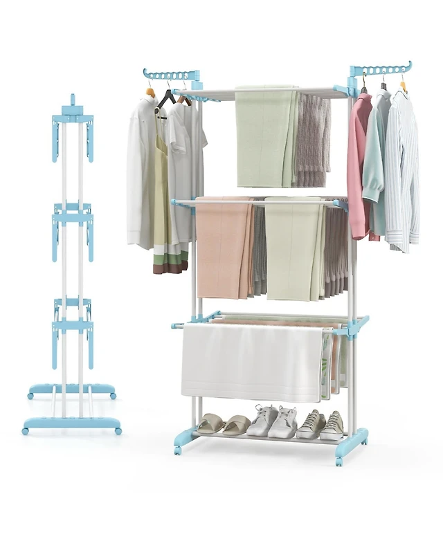 Corner Coat Rack with Top Hanger and 2 Mesh Shelves for Entryway, Hallway, Living Room, or Bedroom Storage