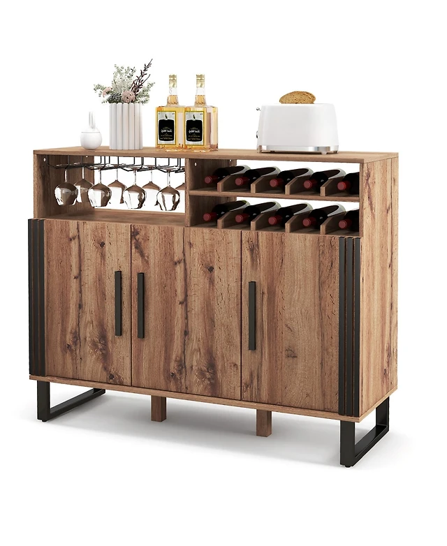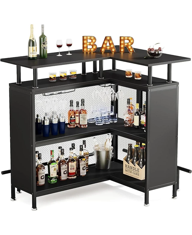 Fm Furniture Clifton Corner Bar Cabinet, with 5 shelves, Cup Hanger and Eight Built-in Wine Rack
