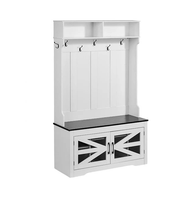 Rustic Coat Rack Wall Mounted Shelf With Hooks & Baskets, Entryway Organizer 5 And Cubbies