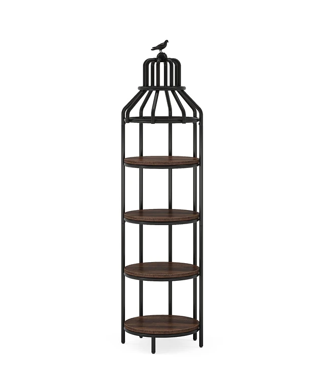 Tribesigns Corner Shelf, 7-Tier Industrial Bookshelf, Wood and Metal Etagere Bookcase, Freestanding Display Shelf for Living Room, Kitch
