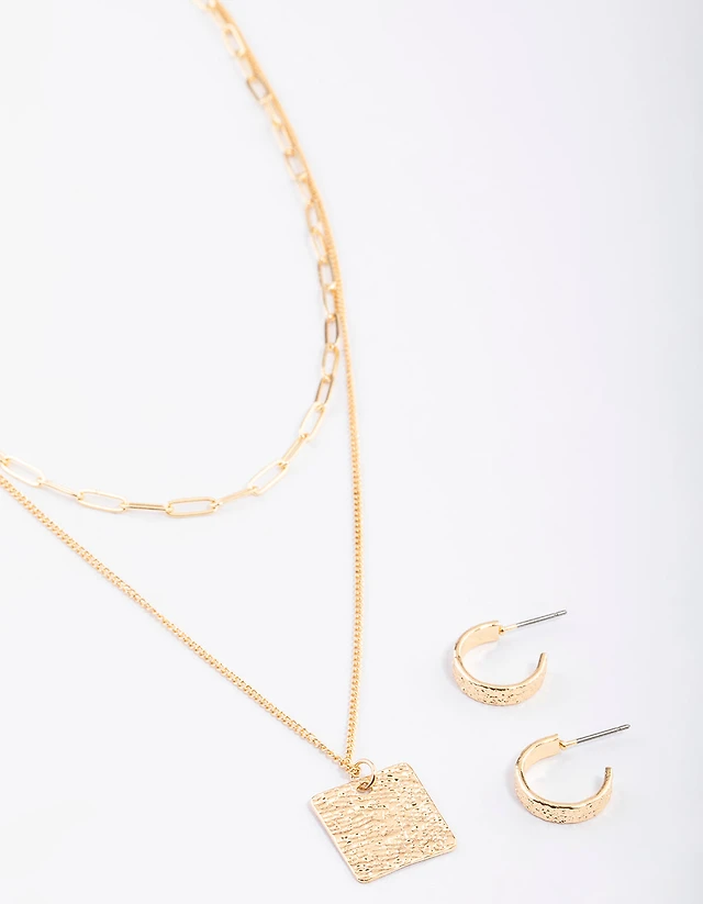 Gold Link Heart Diamante Necklace & Earrings Set