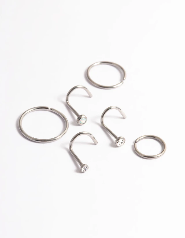Titanium Cubic Zirconia & Oval Nose 6-Pack