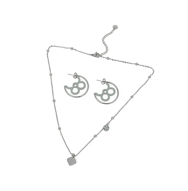 Silver Plated Diamante Cross Necklace & Huggie Earrings Jewellery Set