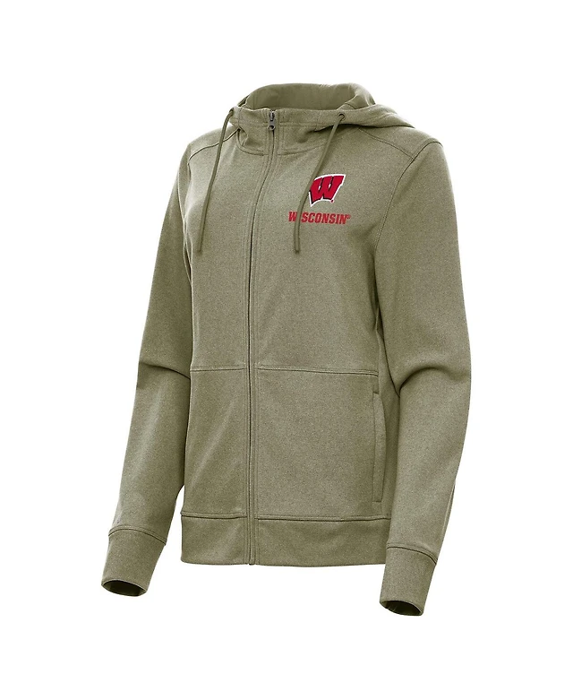 Antigua Women's Olive Wisconsin Badgers Seeker Full-Zip Hoodie