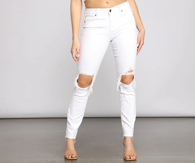 High Rise Destructed Skinny Jeans