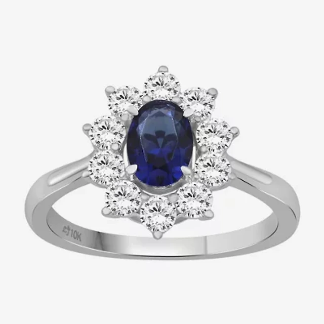 DiamonArt® Womens 2 1/5 CT. T.W. Lab Created Blue Sapphire Platinum Over Silver Oval Engagement Ring