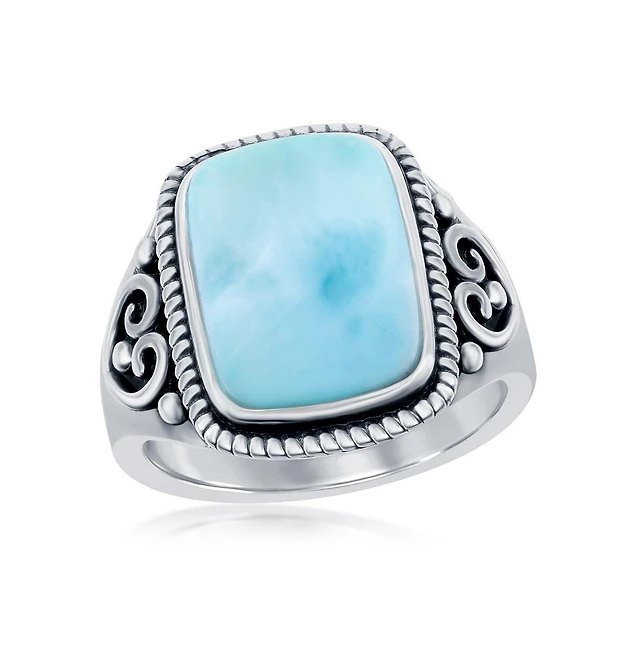 Sterling Silver Oval Larimar Rope Design Band Ring