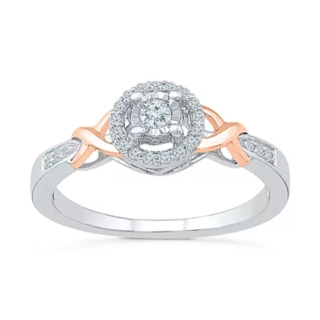 Promise My Love Womens 1/6 CT. T.W. Natural White Diamond 10K Rose Gold Over Silver Sterling Round Halo Ring