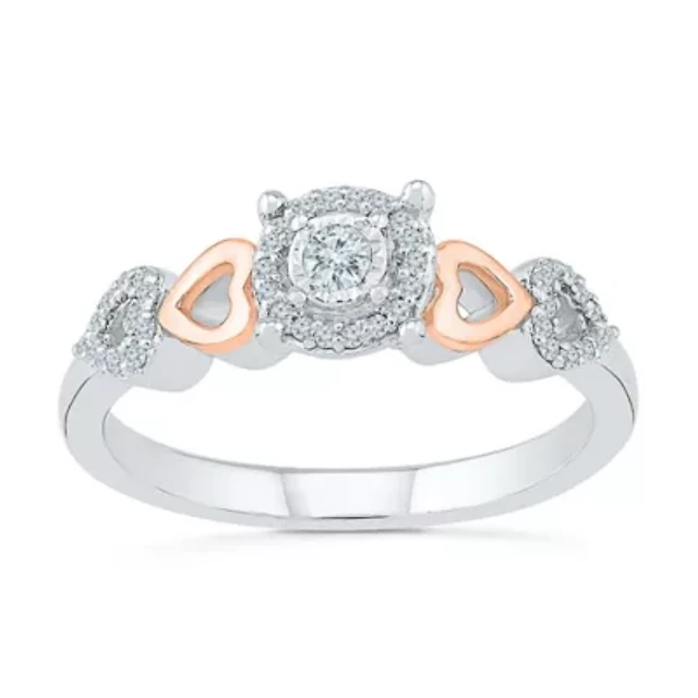 Enchanted Disney Fine Jewelry Womens 1/5 CT. Natural White Diamond 14K Rose Gold Over Silver Sterling Flower Beauty and the Beast Belle Princess Cocktail Ring