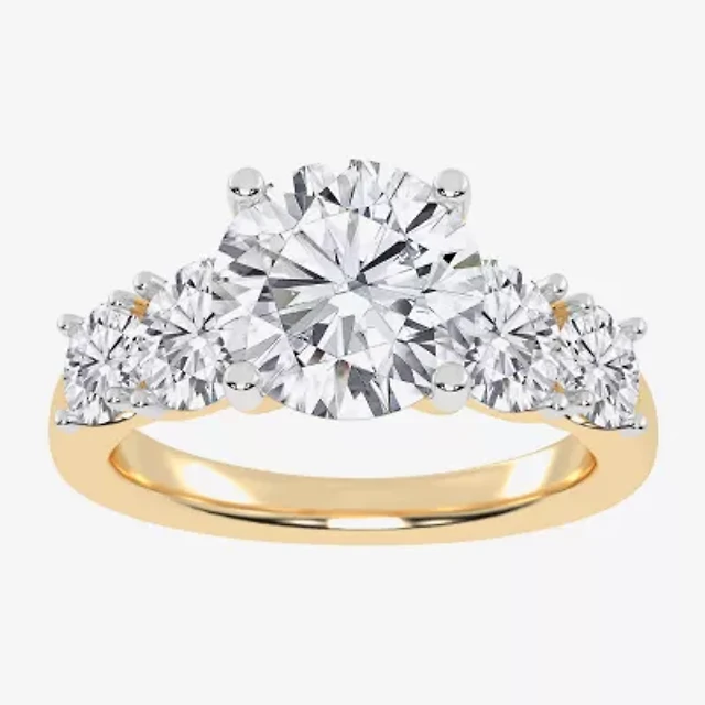 (H-I / Si1-Si2) Womens 2 1/2 CT. T.W. Lab Grown White Diamond 10K Gold Round Side Stone Engagement Ring
