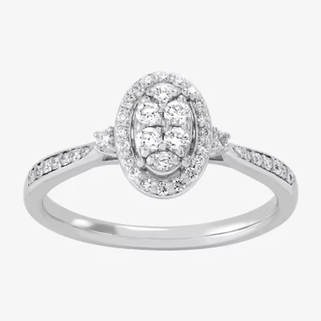 Love Lives Forever (H-I / Si1-Si2) Womens 1 CT. T.W. Lab Grown White Diamond 10K Gold Oval 3-Stone Engagement Ring
