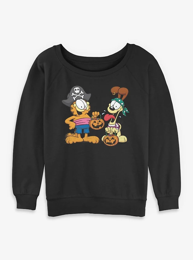 Garfield Pirate Buds and Odie Mineral Wash Womens Crop T-Shirt
