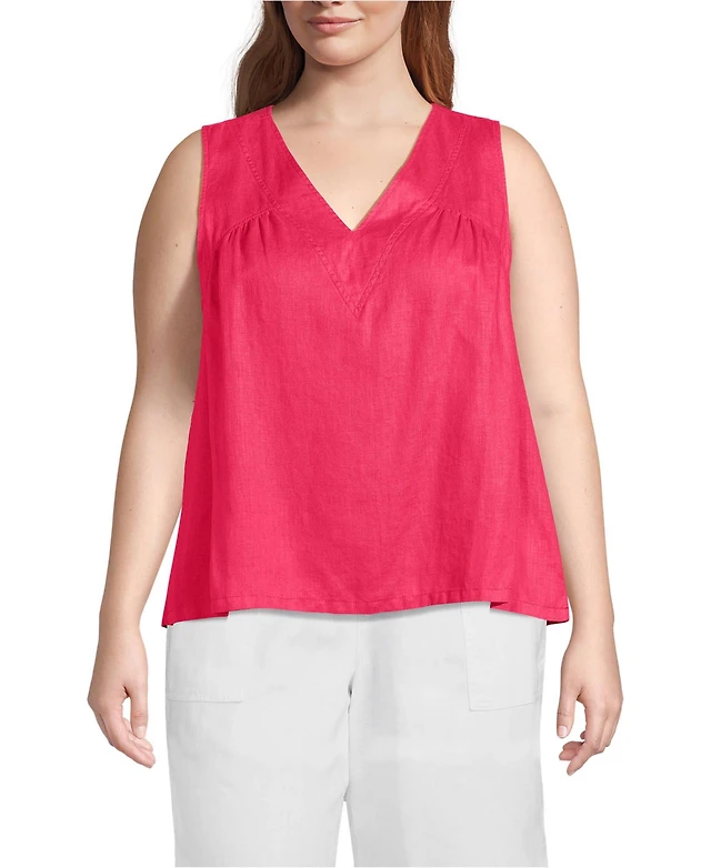 Lands' End Plus Linen V Neck Top