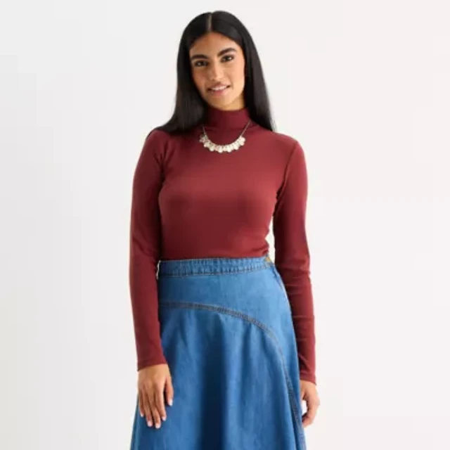 St. John's Bay Womens Mock Neck Long Sleeve T-Shirt