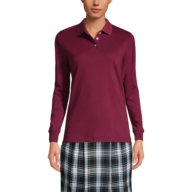 Lands' End Women's Long Sleeve Feminine Fit Interlock Polo Shirt