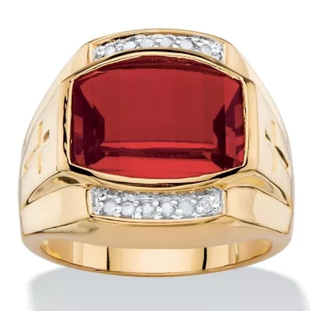 Lab Created Men's 2.77 TCW Red Ruby and Diamond Accent 18k Gold-Plated Ring