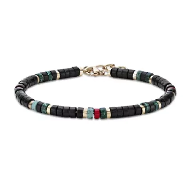 Black, Blue & Red Turquoise Disc Bead Bracelet Goldtone Ion-Plated Stainless Steel