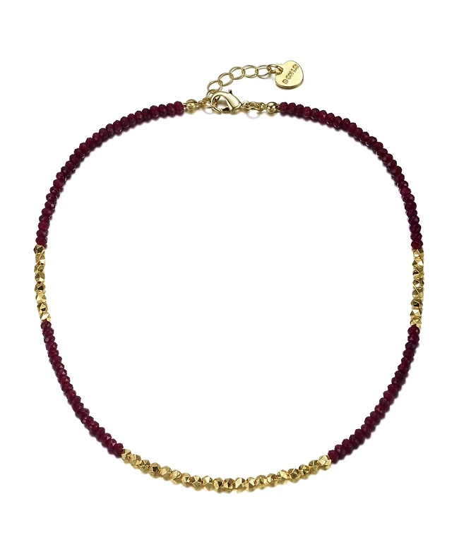 GiGiGirl 14k Yellow Gold Plated Necklace with Red and Gold Plated Mineral Beads in Pattern for Kids