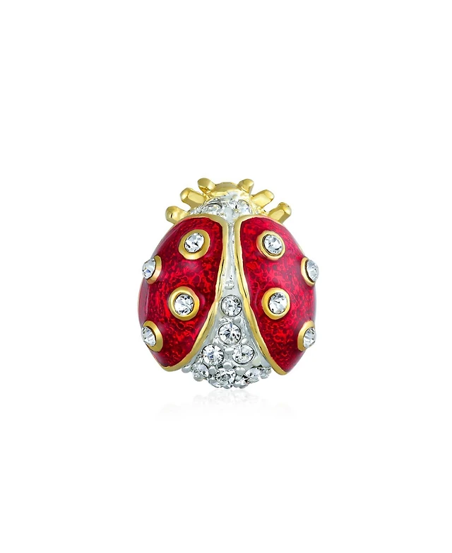 Bling Jewelry Lucky Ladybug Red Gold Plated Enamel Crystal Insect Lapel Push Pin