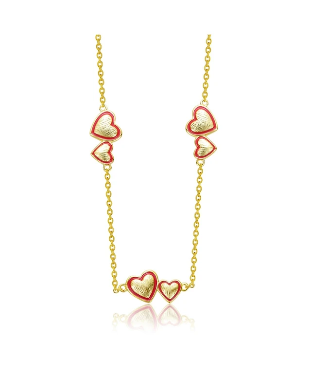 14K Gold Plated with Red Heart Accents Chain Necklace
