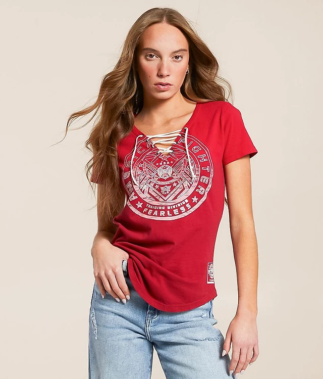 Fanatics Women's Red Wisconsin Badgers Fundamentals Region Draw T-Shirt