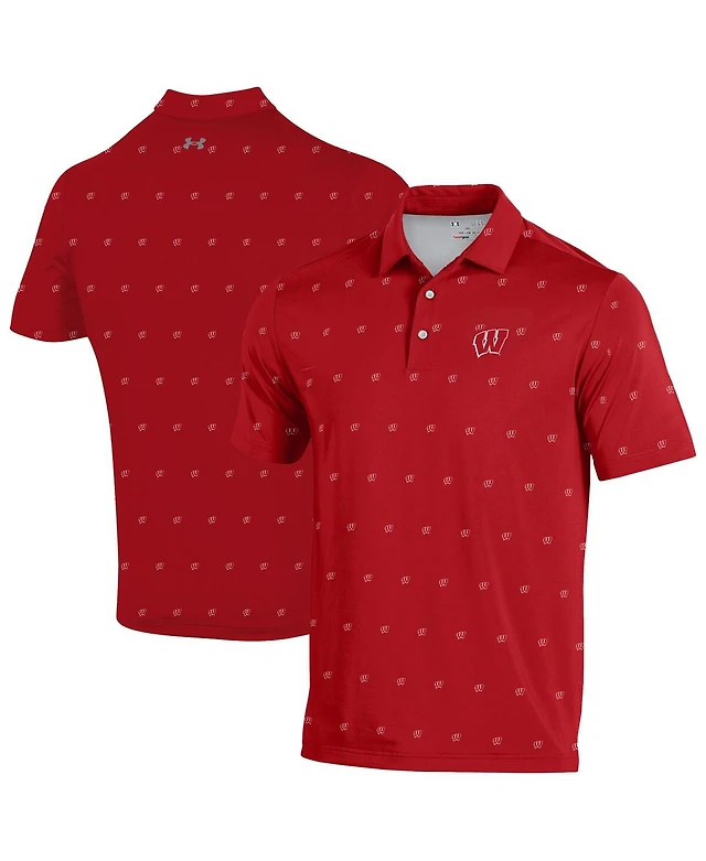 Men's Fanatics Red Wisconsin Badgers Primary Logo Striated Polo Shirt