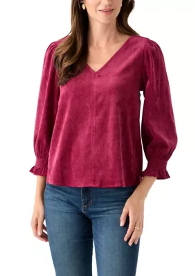 Petite Smocked Sleeve Woven Corduroy Shirt