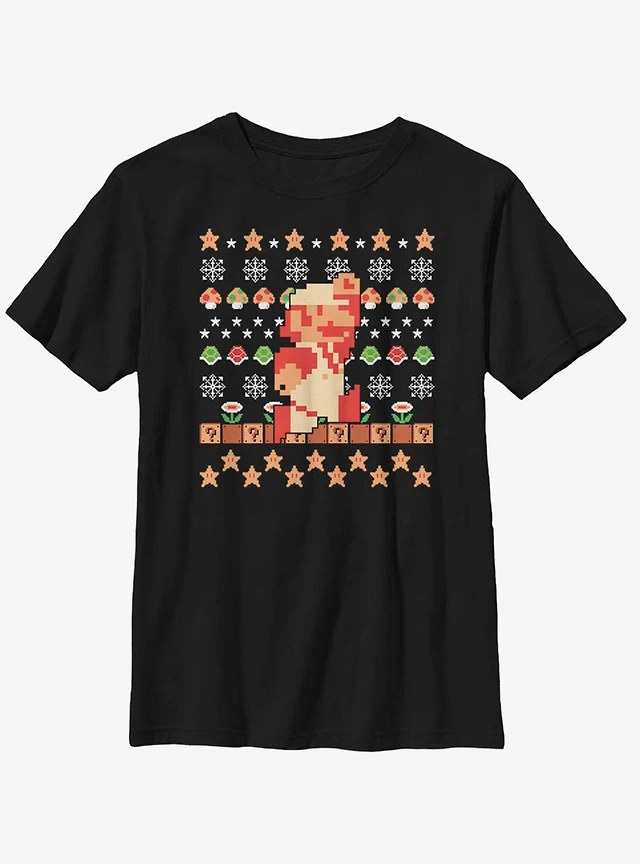 Nintendo Super Mario Retro Jump Christmas Pattern Youth T-Shirt