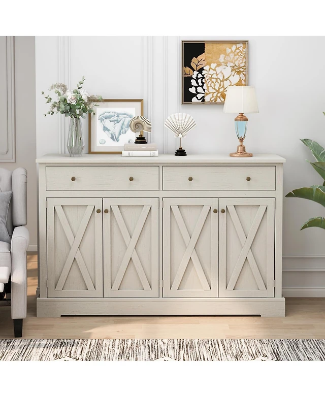 Streamdale Vintage White Sideboard with Drawers and Doors for Storage