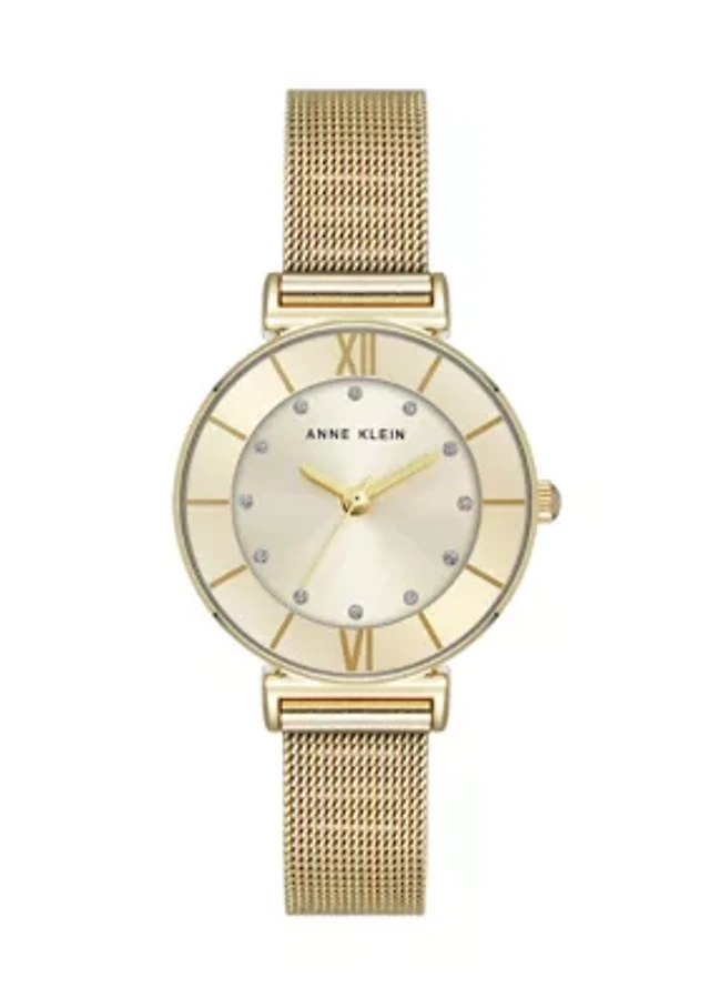 Quartz Premium Round Gold-Tone Stainless Steel Mesh Watch