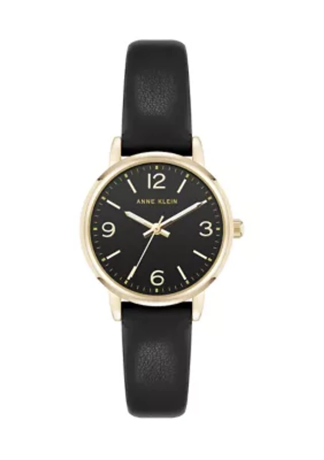 Rose Gold Tone Pyper 3 Hand Black Leather Watch