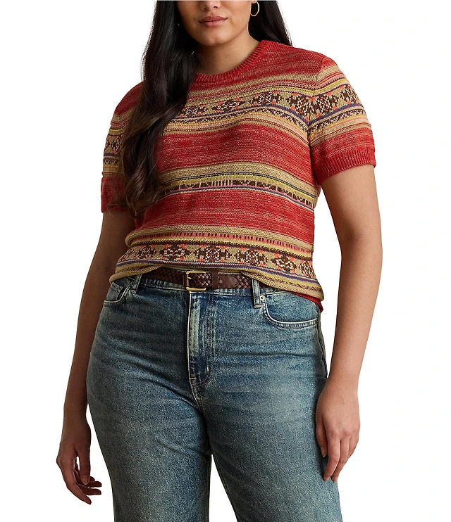 Lauren Ralph Lauren Petite Size Yarn-Dyed Ribbed Knit Stripe Crew Neck Long Sleeve Tee