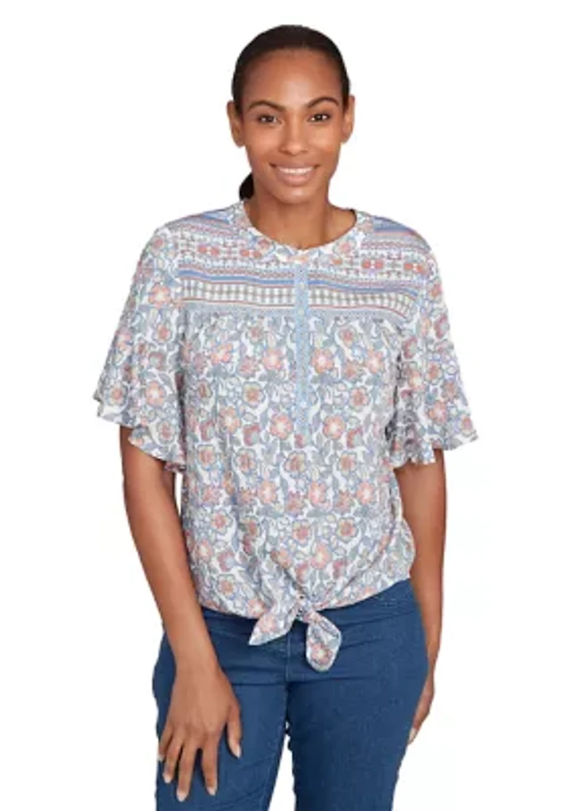 Ruby Rd. Plus Vintage Floral Tie Front Henley Top