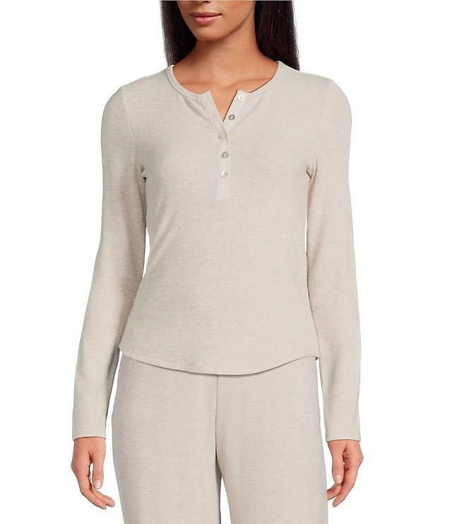 Lucky Brand Women's Valentine Pointelle Trim Rib Henley Top