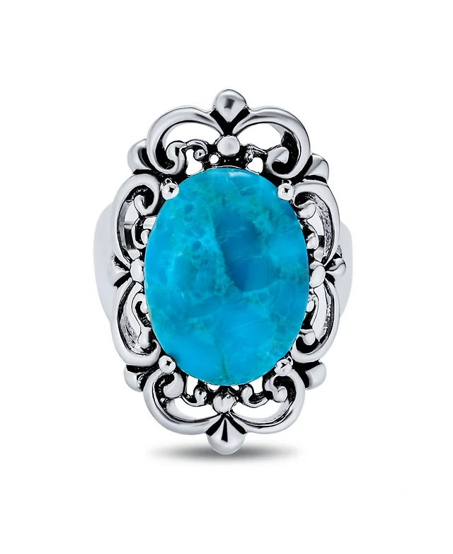 Bling Jewelry Western Style Filigree Oval Cabochon Full Finger Statement Blue Turquoise Ring Oxidized Sterling Silver