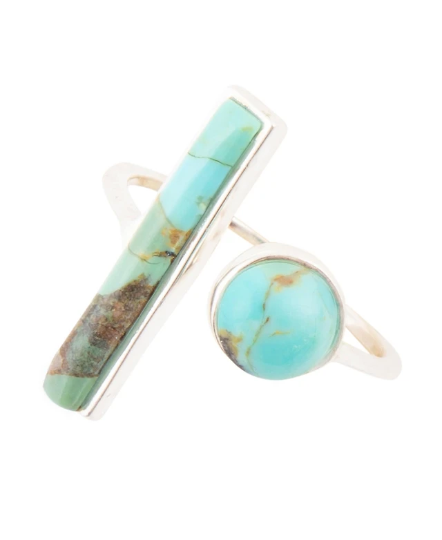 American West Jewelry Sterling Silver Sleeping Beauty Turquoise Vine and Leaf Bypass Ring